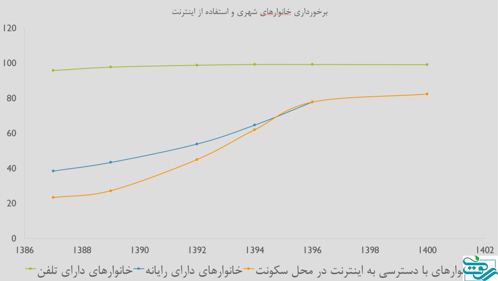 با توسعه فناوری اینترنت پر سرعت در جهان، کشور ما نیز به سرعت در مسیر جهانی شدن گام برداشت. در دسترس شدن تلفنهای همراه از اواخر دهه 80 در کنار گسترش ضریب نفوذ اینترنت در کشور، نوید تغییرات عظیمی در فرهنگ رسانهای مردم داشت. نمودار زیر، روند افزایش دسترسی عموم به اینترنت را نشان می دهد.